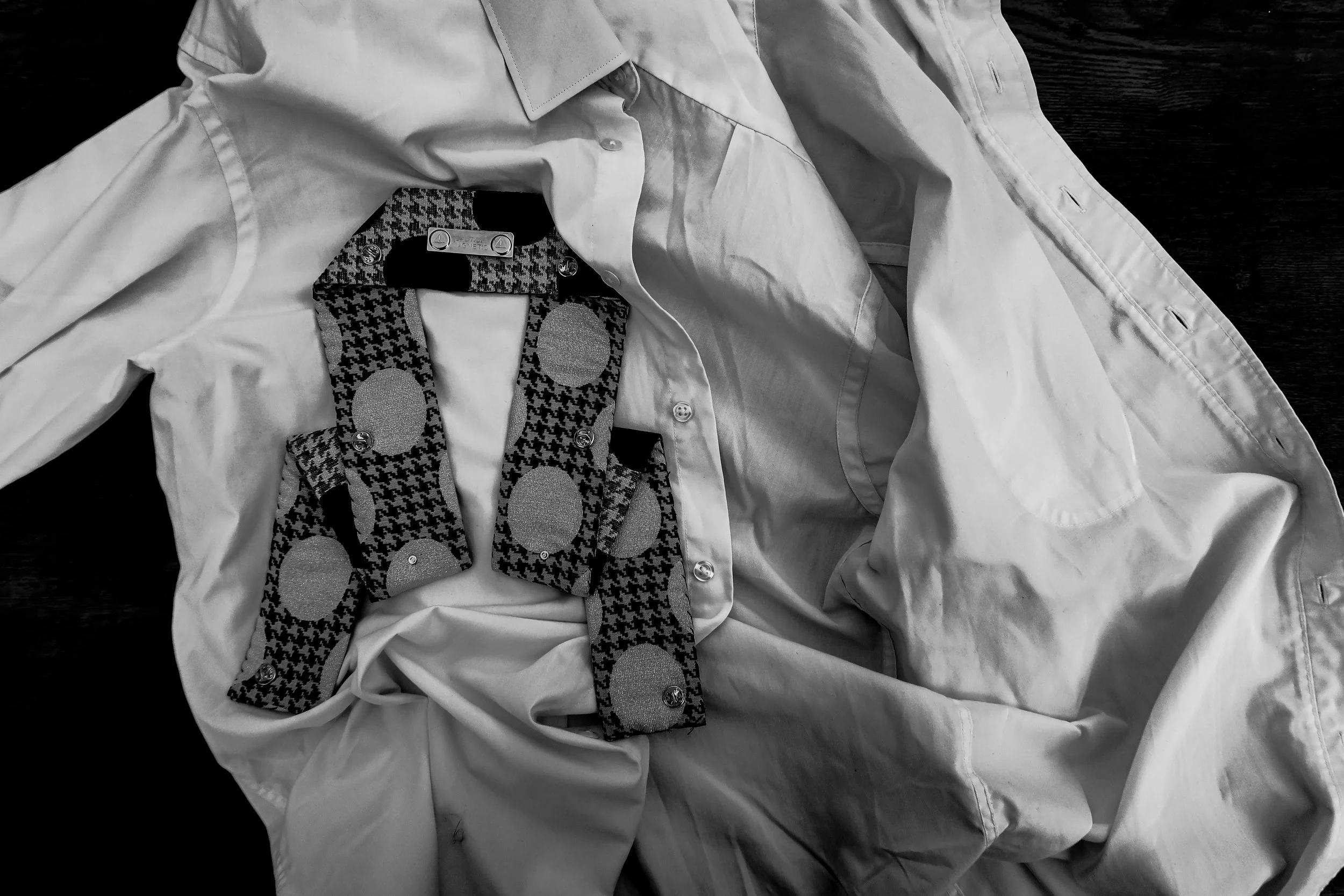 EACH WORK IS FITTED WITH A CONCEALED MAGNETIC MECHANISM, ALLOWING ATTACHMENT TO CLOTHING OR SURFACES WITHOUT PIERCING. THESE MAGNETS ARE PLACED ON BOTH THE FRONT AND THE BACK OF THE PIECE TO ALLOW USE OF BOTH SIDES. MAGNETISM REPLACES PENETRATION, SHIFTING ATTACHMENT FROM AN ACT OF MARKING, TO PRESENCE WITHOUT EVIDENCE. THE CONNECTION SECURES THE WORK WHILE RESISTING SPECTACLE. BY REFUSING PIERCING, THE BODY IS NO LONGER POSITIONED AS A SITE OF ENDURANCE OR DAMAGE.
